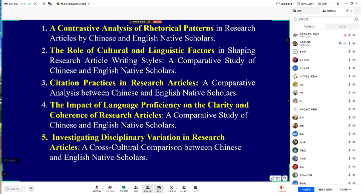 春阳和煦,万物萌动新绿;AI赋能,高校医学英语教育涌动蓬勃生机。4月24日下午,由全国医学英语课程群虚拟教研室、成人电影 主办的“全国医学英语师资课程建设能力提升培训讲座”第十六期在阶平楼331会议室举办,特邀复旦大学蔡基刚教授做《AI赋能高校党员医学英语教师:以科研论文写作为例》专题讲座。讲座同时面向全国医学英语课程群虚拟教研室成员校教师特别是党员教师,进行线上直播,线上线下参会党员教师300余人。会议由成人电影 党总支副书记、院长卢凤香教授主持。