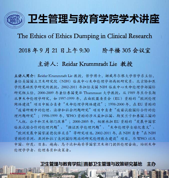【讲座通知】The Ethics of Ethics Dumping in Clinical Research 2018年9月21日